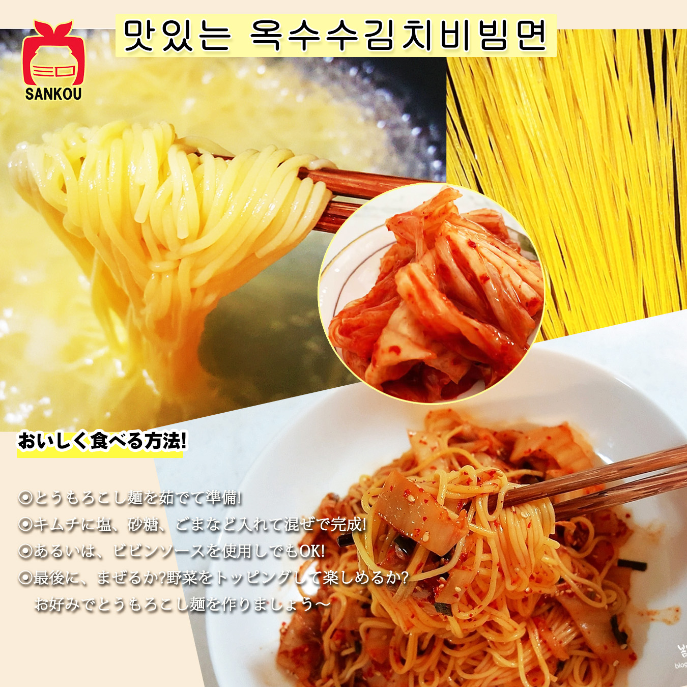 TOP【ふるさと食品】 トウモロコシ麺(玉米麺)400g 価格: ¥330 (税込 ¥356) 販売期間: 数量: 個 在庫: 在庫あり 在庫 在庫あり 返品についての詳細はこちら これから季節にぴったり!ひんやり冷麺、キムチを相性抜群!栄養バランスにいい! これから季節にぴったり!ひんやり冷麺、キムチを相性抜群!栄養バランスよく夏バテ予防!