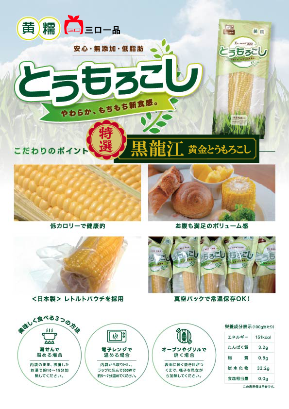 TOPふるさと食品 【特選】黒龍江・黄金とうもろこし 採れたてのフレッシュなおいしさもちっと広がる、こだわり食感のとうもろこし 価格: ¥230 (税込 ¥248) 販売期間: 数量: 個 在庫: 在庫あり 在庫 在庫あり 返品についての詳細はこちら