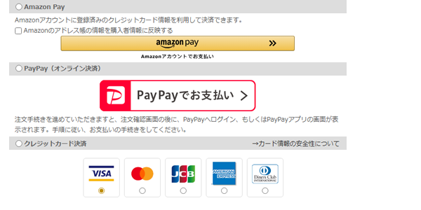 1: Amazon pay 2: PayPay(オンライン決済) 3: クレジットカード決済